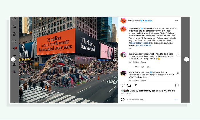 The campaign centres around a super short animated, AI-generated video which shows piles of discarded fast fashion littering Times Square, with the message: ‘what if fast fashion waste was on your doorstep’.
