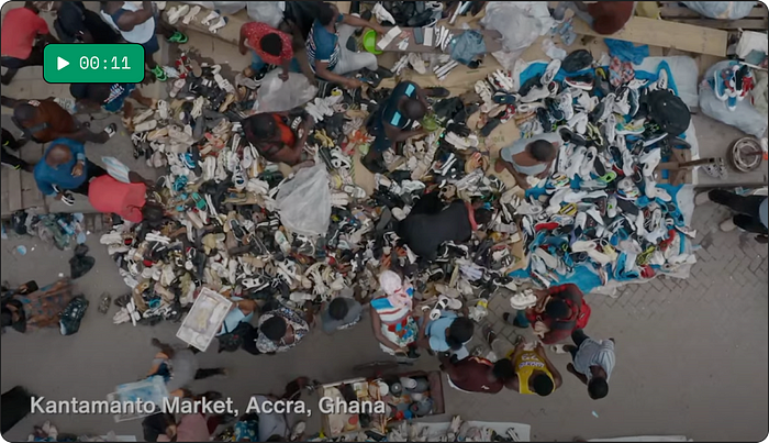 That video used footage from the actual locations where fast fashion waste is dumped, like the Kantamanto market in Ghana, where 15 million items arrive from the global North each week 🤯.