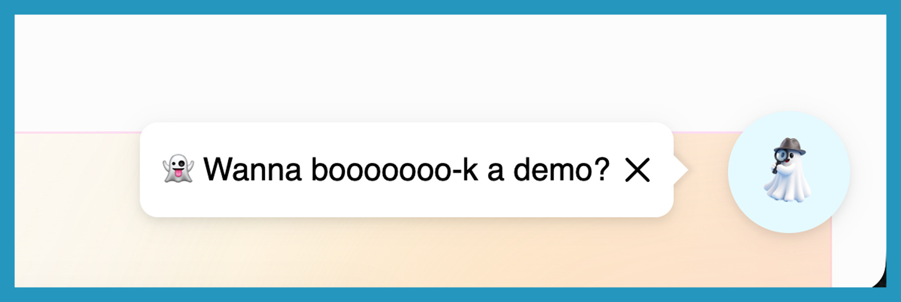 Plus, they get extra brownie points for the “Wanna booooo-k a demo?” CTA that pops up in the bottom right of the website.